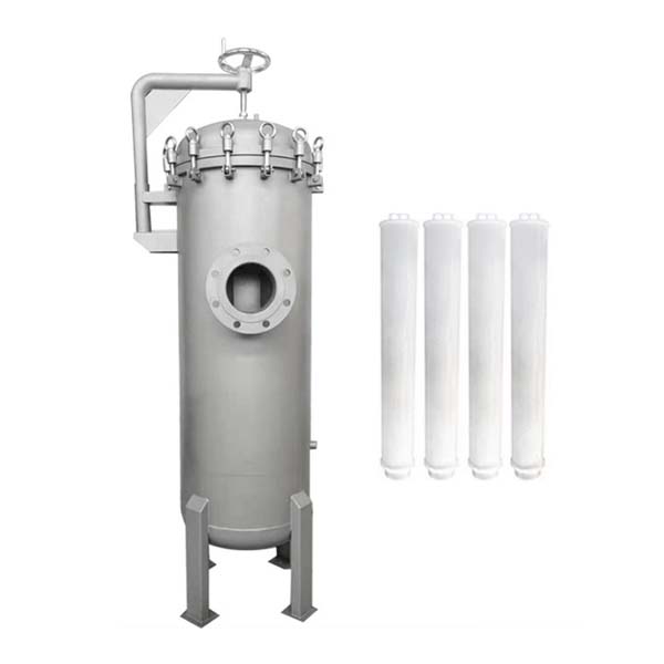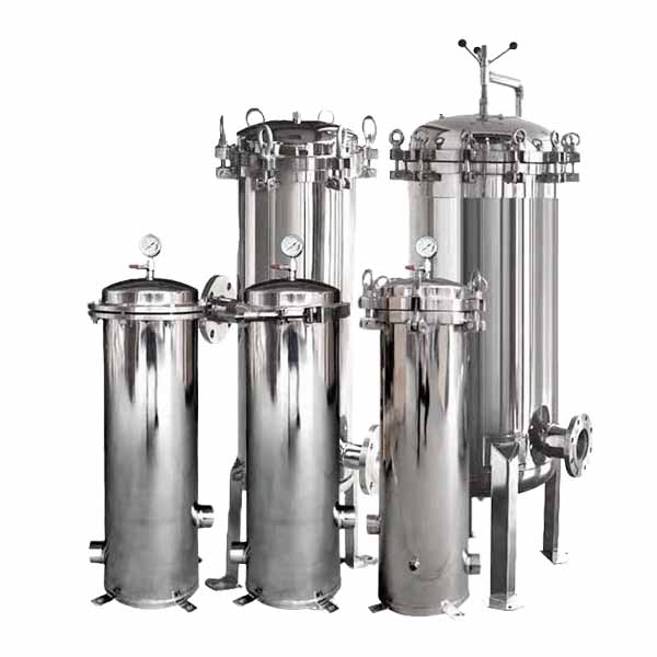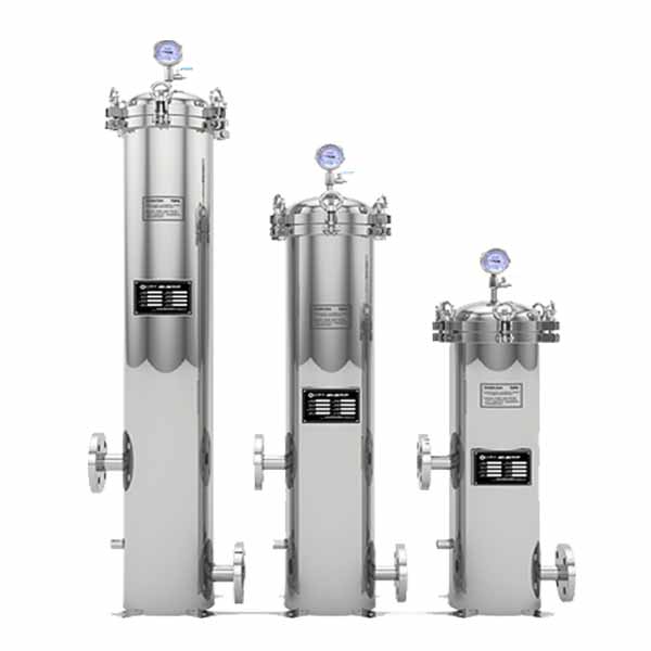 保安過(guò)濾器大都采用不銹鋼做外殼,內(nèi)部裝過(guò)濾濾芯,主要用在多介質(zhì)預(yù)處理過(guò)濾之后,反滲透、超濾等膜過(guò)濾設(shè)備之前。用來(lái)濾除經(jīng)多介質(zhì)過(guò)濾后的細(xì)小物質(zhì)(例如微小的石英沙,活性炭顆粒等),以確保水質(zhì)過(guò)濾精度及保護(hù)膜過(guò)濾元件不受大顆粒物質(zhì)的損壞。
