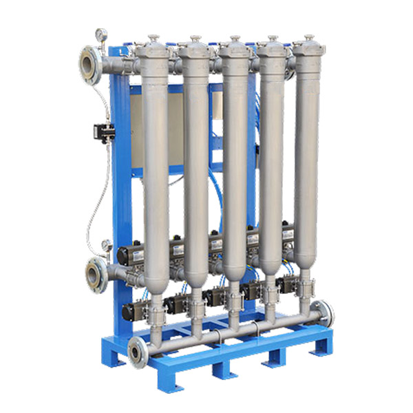 列管式反沖洗過濾器由罐體、濾芯組件、設(shè)備就近連接管線、自動閥門、控制柜等組成。在過濾器殼體的內(nèi)部設(shè)置有多根濾管,污液從濾管外面流向濾管內(nèi)部,最后從過濾器的集液腔流出??刂?..