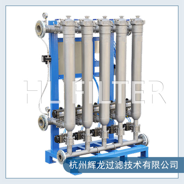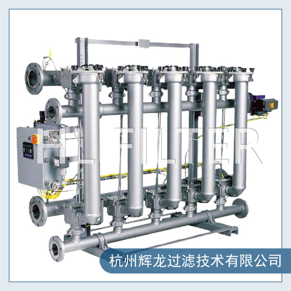全自動列管式反沖洗過濾器工作原理:液體從入口總管流入,進入到各個過濾單元的入口,液體從外向內(nèi)透過濾元外表面,流向各個過濾單元出口,匯集到出口總管后流出,顆粒雜質(zhì)被攔截在濾元外表面,累積形成濾餅,當(dāng)過濾壓差逐漸升高達到預(yù)設(shè)值時(通常為1.5bar);或者清洗時間周期到時,控制系統(tǒng)啟動反沖洗動作,對每個過濾單元逐一反沖洗,整個反沖過程完成,當(dāng)某一個過濾單元被反沖洗時,其他單元仍正常過濾。